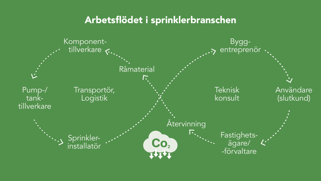 I ”Brandsprinklerbranschen” ser arbetsflödet förenklat ut som nedan illustration. Vi som är i ledet pump-/tanktillverkare, är med